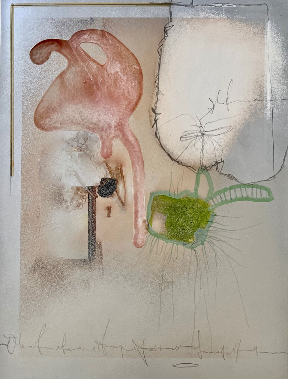 “Das Zurücknehmen und das Hervortreten, das Sich-Zeigen, Überlagern und Verschwinden... alles ist gleichzeitig und darf gleichberechtigt da sein, die Ebenen durchdringen sich, sind miteinander verwoben. Diese Verschränkung, Verwandlung und Formveränderung wiederum findet für uns oft "unsichtbar" statt, in Welten Dahinter, Transiträumen, auf Metaebenen, in Räumen, die im eigentlichen Sinne keine sind.“